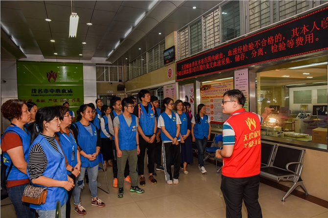 10月20日,电白区义工协会代表走进市中心血站,亲身了解血液的采集、制备、储存等过程。