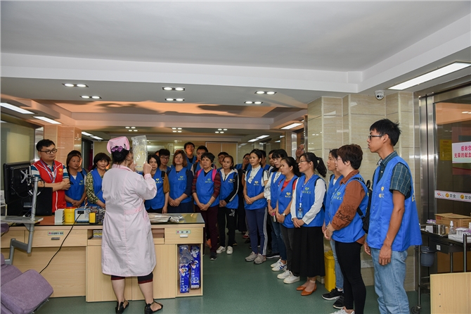 20日上午9时,电白义工协会代表乘坐血站采血大巴车一路欢声笑语来到血站,首先他们参观采血科,听取采血科副主任詹伟波对采血耗材使用的介绍,当他们了解到每一位献血者所用的针头、血袋(采血耗材)是一次性使用,避免了重复使用造成交叉感染的风险,使他们对以前道听途说的错误传播得到更正。义工代表们在血站宣传科梁文超老师的带领下,又参观了成分血库科、检验科等采供血业务科室,实地观看了血液从采集、检测到分离制备、贮存发放的全过程,认真听取了工作人员对采供血每个流程的详细介绍。