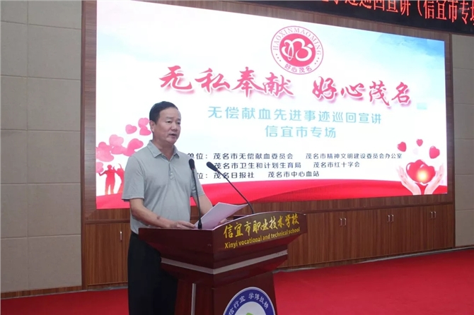 为了做好无偿献血宣传工作,进一步贯彻落实《献血法》和《广东省实施〈中华人民共和国献血法〉办法》,唤起人们对无偿献血事业的关注和对无偿献血者的敬意,10月26日下午,“无私奉献 好心茂名”无偿献血先进事迹巡回宣讲信宜市专场活动在信宜市职业技术学校举行,来自该市有关领导、市直机关和企事业单位的200多人到场聆听。