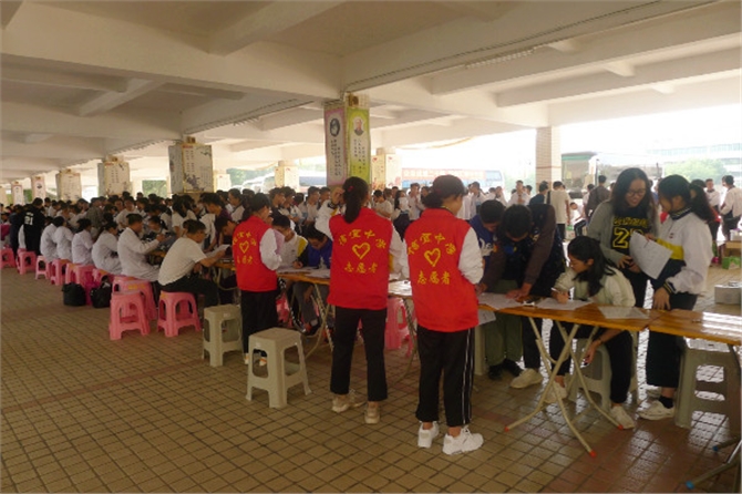 为纪念《献血法》颁布实施二十周年,鼓励全校师生发扬勇于奉献、乐于助人的优良传统,市中心血站携手信宜中学举行了以“众志成城二十载 热血汇聚信中情”为主题的无偿献血活动。