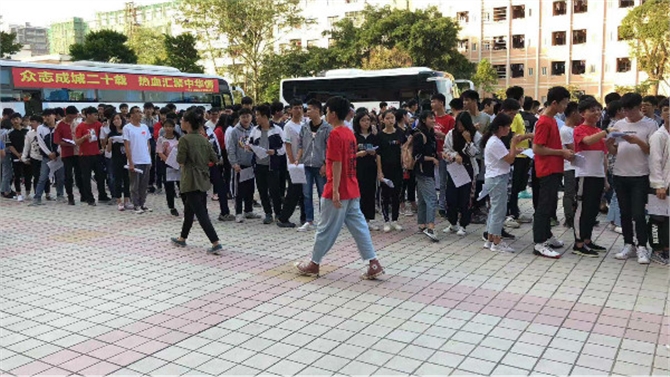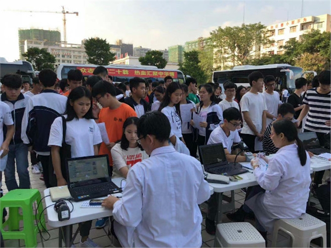 2018年11月24日下午3时半,在副校长张强文的带领下,团委的干事和校义工队员,早早就到达了献血现场,和化州市义工协会的10多名义工,一齐协助血站的医护人员开展献血工作。该校符合献血年龄参加献血的学生,自觉地排着长队,从体检到血液初筛,合格后吃鸡蛋糖水再上车献血,整个献血现场有条不紊,气氛热烈、感人。