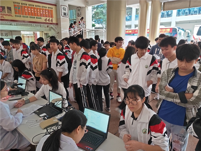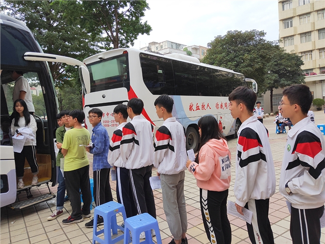 2018年11月30日上午8时,化三中教学楼前人头涌动,爱心如潮。化三中师生和茂名市中心血站联合开展奉献热血、挽救生命、奉献爱心的大型献血活动。