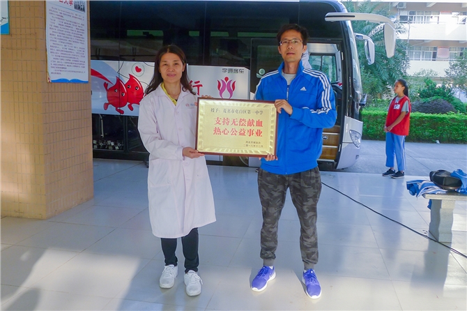 茂名市电白区第一中学秉承"严谨、求实、拼搏、创新"的校训,确立“以人为本,一切为了师生和学校的和谐发展”的办学理念,每年都积极开展无偿献血活动。