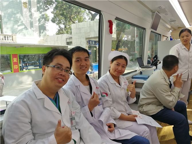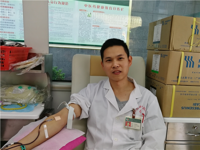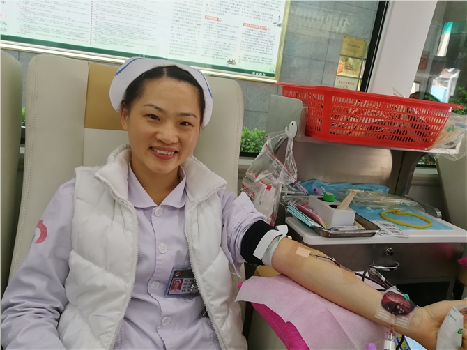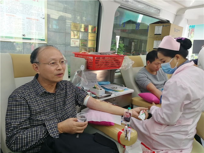 下午2点30分,献血车驶进市中医院,全科、药剂科、心内科、保卫科、急诊科、信息科等众多科室医务人员纷纷来到现场,踊跃参加献血活动。市中医院副院长曾明带头参加献血,他说:“这是我第10次献血,少量献血不仅可以刺激骨髓造血功能,更重要的是无偿献血还可以抢救更多患者。作为一名医务工作者,我们更清楚血液对于患者而言意味着什么,希望可以通过我们的努力能带动更多的市民参与到无偿献血的队伍中来。”在现场,有的医护人员献血后又继续回到工作岗位;有的是休息时间赶来参加献血。许多市民看到医护人员的爱心行动,也纷纷撸起袖子参与献血。
