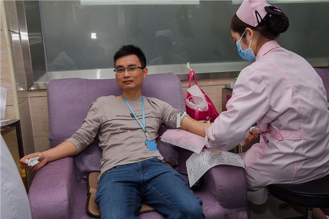 2月15日早上8点,各单位的工作人员就准时来到献血活动现场,每个人的脸上都带着喜悦的笑容。市卫生健康局的张聘权、张丹、李火明科长以及李电才、杨彩媚、容亚清等多位同志齐齐捐献热血,李电才同志是粤西献血冠军,他本人累计献血210次,9.82万毫升。市慢性病防治中心陆超劲主任高度重视本次献血活动,亲自带领30多位工作人员参加献血。市疾病预防控制中心的蔡雅清团委书记在献血现场为工作人员加油打气。市职业病防治院的温伟华副院长、吴黄昊团委书记带头献血,其中温副院长已经累计献血13次。市中心血站符合献血条件的工作人员已经形成献血的主动意识,每当献血间隔期到就主动参加献血。血站参加献血的人数占职工总人数高达77%,累计献血4000毫升以上的已达14人,其中业务科黄彦主任累计献血1.2万毫升。在本次活动中,重复献血者占大多数,他们说:“献血是每个健康公民应尽的义务。作为医务工作者,我们更清楚血液对于患者而言意味着什么,我们参加献血不仅能救助他人,也能很好地消除市民对献血的疑虑,希望通过我们的努力能带动更多的市民参与到无偿献血的队伍中来。”