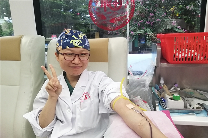 和家宝妇女儿童医院的李杏主任在早上8点30分已经和职工来到活动现场,她还以身作则,带头献血。她说:“尽管我们医院的职工人数并不是特别多,但是依然会传递我们的正能量。”