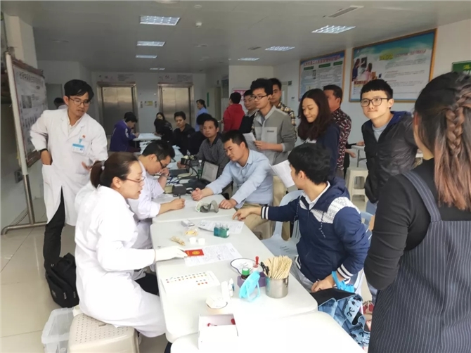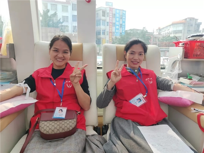 上午的献血活动刚结束,血站的工作人员又马不停蹄地驱车赶到合江医院(化州市第二人民医院),宝圩、文楼、平定、那务等镇卫生院医务人员从四面八方赶来参加献血,现场气氛热烈感人。在这里我们见到了一个青春靓丽而又熟悉的身影:平定卫生院行政办公室的李晓玲(左一),近两年在平定镇开展献血活动时,都是她带着医务人员过来献血。