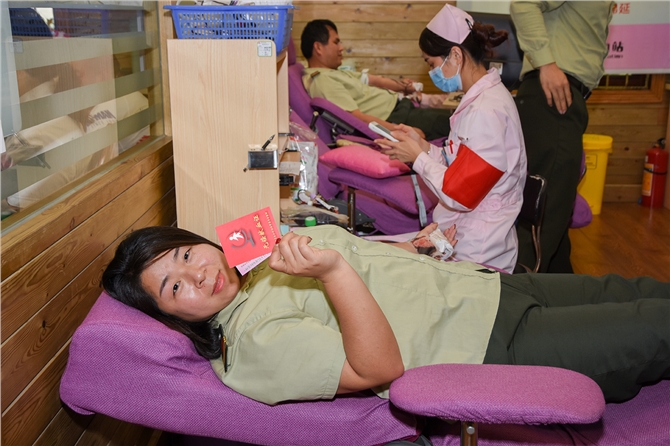 3月18日下午,由云湛高速阳化管理处金塘中心站站长张海艳带领13名党团员青年如约来到人民广场献血屋挽袖献血。献血现场,大家踊跃卷起袖子捐热血,奉献爱心。已有献血经历的张海艳一边献血一边说:“定期献血不仅对身体没有损害,还能促进血液循环;适量献血既增强了体质,又能帮助急需用血的患者。”