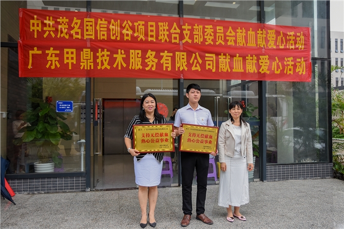 广东甲鼎技术服务有限公司(简称“甲鼎公司”)是茂名市高新区的一家民营企业,主要业务有职业病危害评价,安全生产应急预案编制,职业病危害事故应急预案编制,安全生产标准化咨询、评审,职业卫生档案管理等,因业务需要,经常与市卫生健康局相关部门有业务联系。当甲鼎公司陈汉诗总经理了解到我市临床用血供应面临不足等情况时。陈总经理联系血站工作人员,提出该公司的青年人多,可以动员他们献血为社会多做一点贡献。她还主动与国信创谷公司领导层提议无偿献血相关事宜,对方马上响应,决定以中共茂名国信创谷项目联合支部委员会名誉召集员工献血。