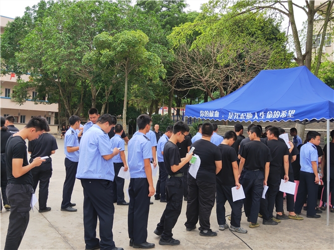 广东化州司法学校是为公、检、法、司及事业单位和社会各界培养中等应用型法律人才的区域学校,近年来毕业学员就业顺利,到应聘单位后由于工作突出,得到社会各界的好评,这得益于该校对学员从严训练的结果。该校近年来一直支持无偿献血公益事业的发展,每年都主动邀请血站到学校开展献血活动。2019年4月21日上午8时50分,天气晴朗,茂名市中心血站的献血车缓缓驶入化州市司法学校教学楼前,工作人员配合默契,很快就将咨询、体检区及采血车上的采血物品准备好,等待学生们前来献血。
