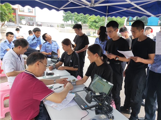 在血站工作人员的引导下,教官和学员们有条不紊地进行献血的“三步曲”,填表、体检、血液初筛,通过这三步曲后,合格者面带笑容轻快地登上献血车进行献血。