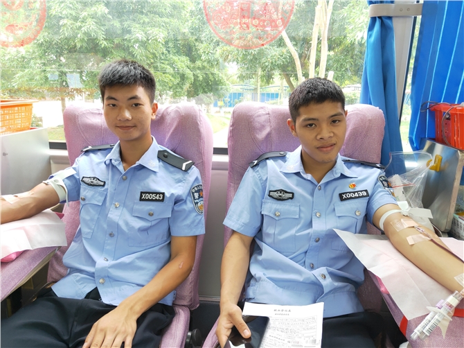 教学楼的另一边,100多名符合献血年龄的学员们,正在副校长陈超杰和教官们的指挥下,列队等候血站的工作人员进行献血前的动员。
