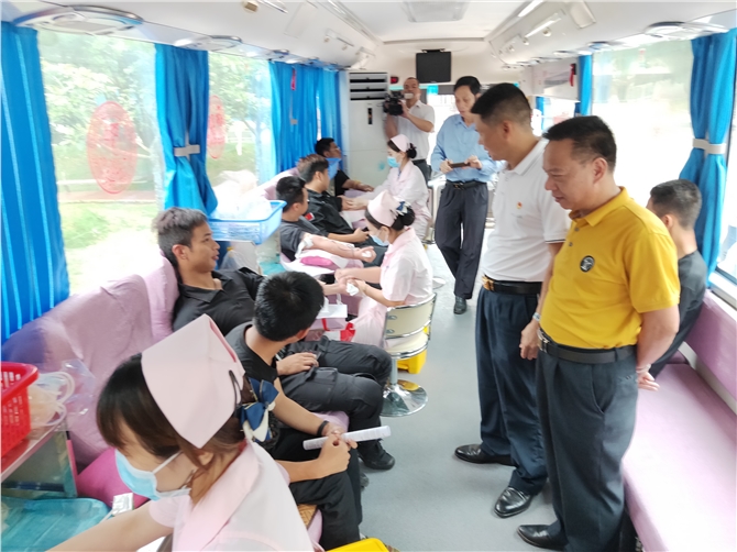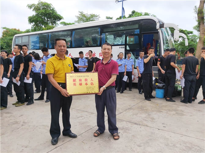 在献血过程中,校长张瑜先生在百忙中抽时间前来看望献血的教官和学员们,给他们鼓劲打气,并接受了茂名市中心血站林平副站长给他颁发的“无偿献血 英雄本色”的金字牌匾。在现场,化州电视台对陈副校长和学生代表进行了采访。经过2个半小时的工作,至12时,教官和学员们的献血过程圆满结束,共有85名教官和学员献出宝贵热血2.63万毫升。