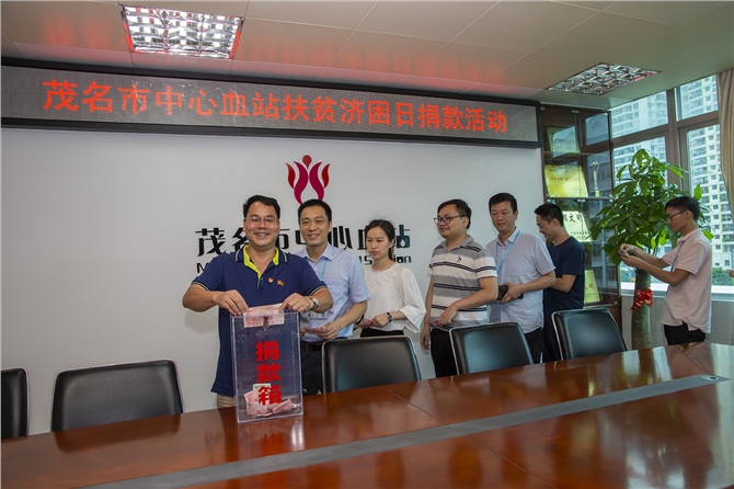 今年是第十个“广东扶贫济困活动日”。为贯彻落实习近平总书记关于扶贫工作的重要论述和视察广东重要讲话精神,全面落实中央和省委省政府、市委市政府关于打赢脱贫攻坚战决策部署,茂名市中心血站积极响应号召,于6月20日开展了以“决战脱贫坚攻,助力乡村振兴”为主题的爱心捐款活动。血站领导班子成员争当表率,带头捐款,全体干部职工110人慷慨解囊,奉献爱心,共募集到捐款4610元。