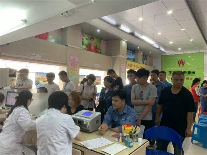 2019年7月24日上午,广东众和化塑股份公司联合茂名市中心血站举办无偿献血活动。早上9时公司的员工陆续来到血站采血大厅,在市中心血站工作人员以及名爱总队星愿志愿者服务队的指导下,活动有条不紊地进行。有的员工在为第一次献血的同志加油打气;有的员工向医生咨询献血的问题;有的员工向大家分享献血的经历。许多员工多次参加献血,有位献血者指着采血室对工作人员开心地说:“去年我就是坐在那个位置献血。”