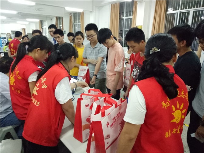 2019年8月22日下午,绵绵雨水洗刷了酷热,一场以 “血浓情浓,血脉同行----让爱与希望同行”为主题的无偿献血爱心活动在高州市第一中学拉开帷幕。湿滑的路面抵挡不住一中学子的献血热情,学生们有序地进入阅览室内排队进行信息登记、体检、采血等环节,校长杜锡孟亲临现场为学生们加油打气,活动现场气氛热烈感人。