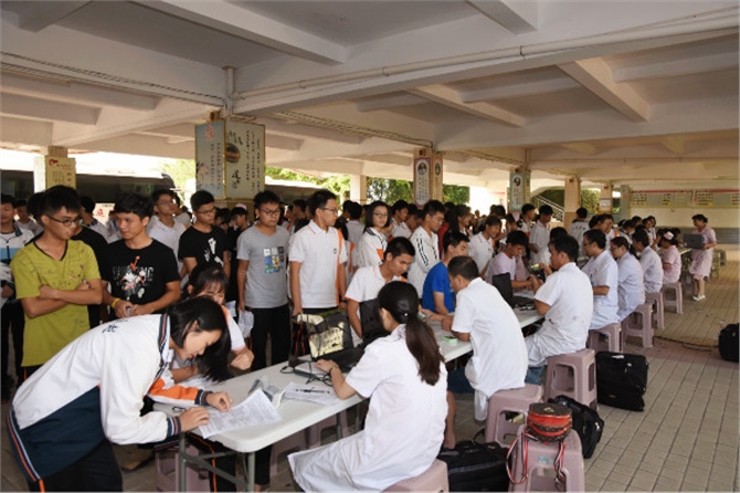 此次活动,得到了信宜中学校领导的大力支持和广大师生积极响应。当天,为了保障献血活动的顺利进行,校方安排了20多名志愿者为献血的同学提供接待、指引以及鸡蛋糖水供应等服务。活动刚开始,参加献血的同学就从各班教室迅速赶到献血现场。填表、体检、血液初筛、献血,每一个步骤都在志愿者的协助下井然有序地进行。志愿者给献血的师生递上鸡蛋糖水,温暖着他们热诚而又忐忑的心。