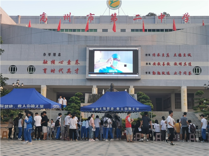 高州二中的校领导及全体教职工是本次献血活动的领头羊,献血活动能够顺利开展,离不开学校和血站工作人员的互相支持与配合。前期活动策划,献血知识宣传、场地安排、时间分配、动员宣讲会等都投入了大量的时间和精力去筹备。