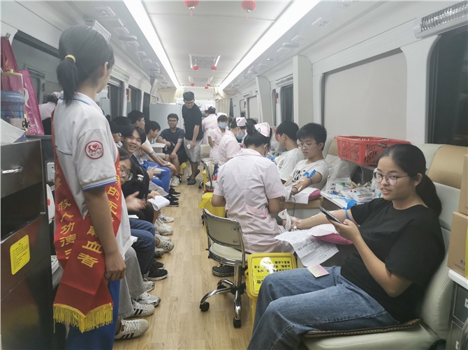当天晚上17时30分,校园广场里人头攒动,由30多名学生组成的志愿队伍积极配合血站工作人员做好献血服务工作,师生们有序地聚集到献血活动现场,纷纷挽袖献出热血,整个活动从填表、体检、验血、喝糖水、献血、领证,有条不紊地严格按照流程进行。