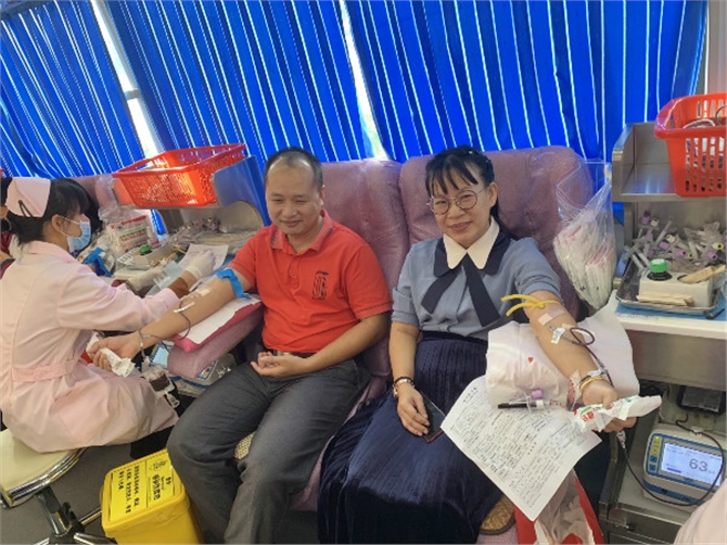 血液是宝贵的,更可贵的是关爱他人的博爱之心。该校团委书记黄可辉不但以身作则,多次带头献血,献血当天一直在活动现场指导工作,还组织了多名学生志愿者在活动现场给献血者提供贴心的服务。潘伟溪主任,一直用行动支持着无偿献血工作,当天他是第9次参加献血。