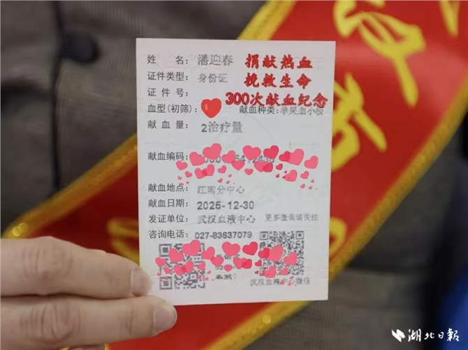 在潘迎春看来,第300次献血并非终点,而是新的起点。依据现行法规,60岁为献血年龄上限,但她坦言:“只要身体允许,能献一天就坚持一天。”她特别呼吁:“希望更多年轻人、新人加入无偿献血行列。”