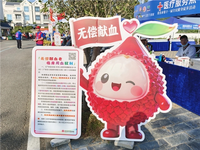 此次活动中,市中心血站分别在元坝桥头村、柏桥服务区(西区)设置展位与流动献血车服务点,全新亮相的公益卡通形象成为现场焦点。这个被称作“热血荔仔”的卡通形象,以阳光可爱的造型吸引了徒步市民的目光,不仅是爱心的具象化象征,更承担着无偿献血知识普及的使命。血站精心打造四大特色打卡区域:好朋友见面合影区供市民与卡通形象定格暖心瞬间;流动献血车参观区欢迎市民登车体验,专业医护人员现场提供量血压、献血知识答疑服务;无偿献血知识宣传区系统解读献血科学知识与最新政策,重点普及无偿献血者临床用血权利与优先用血权益,同步宣传血费减免一次都不跑的便民举措;有奖问答区则以趣味互动形式激发市民参与热情,答对问题即可领取精美礼品,让公益科普更具吸引力。