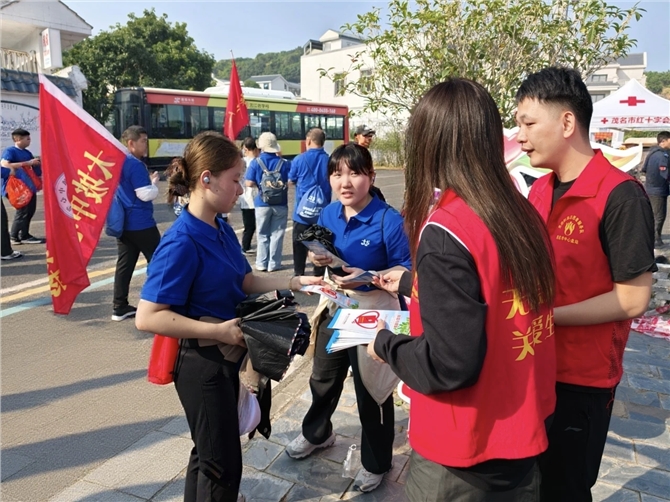 本次全民健身徒步活动中,市中心血站组织党员干部职工积极参与,他们既以市民身份沉浸式体验全民健身的热烈氛围,更以无偿献血宣传员的担当主动履行公益使命。沿途,他们手持印有“徒步,丈量山河:献血,接力生命”等口号的宣传彩旗穿梭于人群,积极与市民交流互动,生动普及献血知识。这场融合健康活力与公益宣传的行动,以真诚的互动诠释了“血站人”的先锋本色,展现了血站队伍的专业素养与社会担当,有效提升了市民对无偿献血的关注与认同。