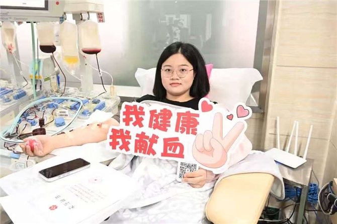 第二次献血是在上大学的时候,从此,献血便融入了她的日常生活。工作实习期间,她了解到除了捐献全血,还可以捐献成分血——单采血小板,于是开始了定期参加无偿献血的旅程。